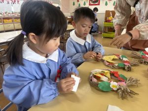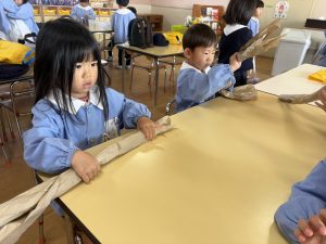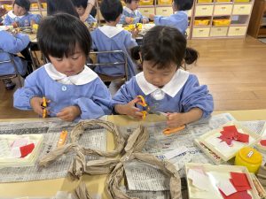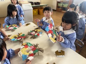 子どもたちと一緒に、来年の午年にちなんだ正月飾りに挑戦しました。