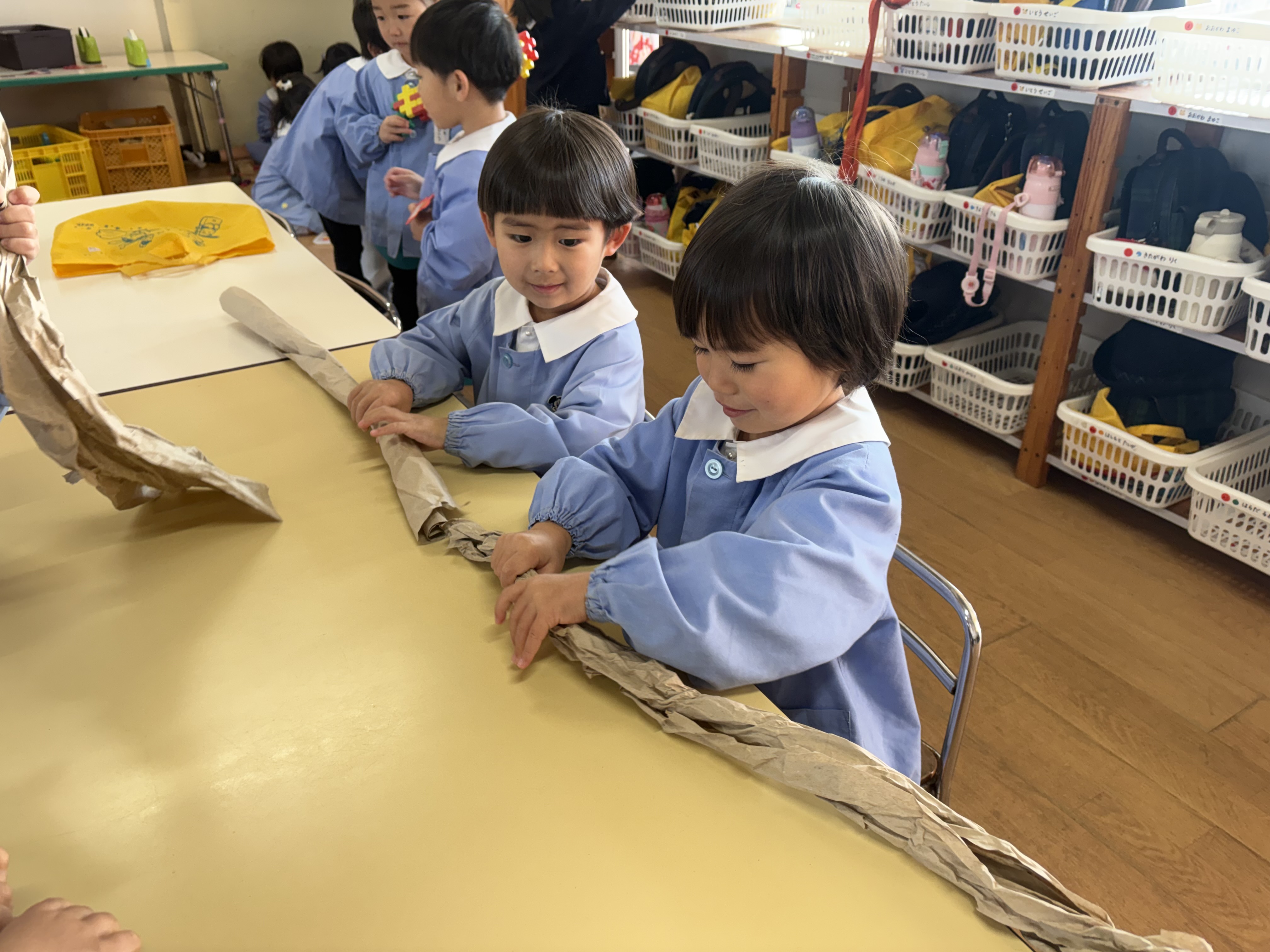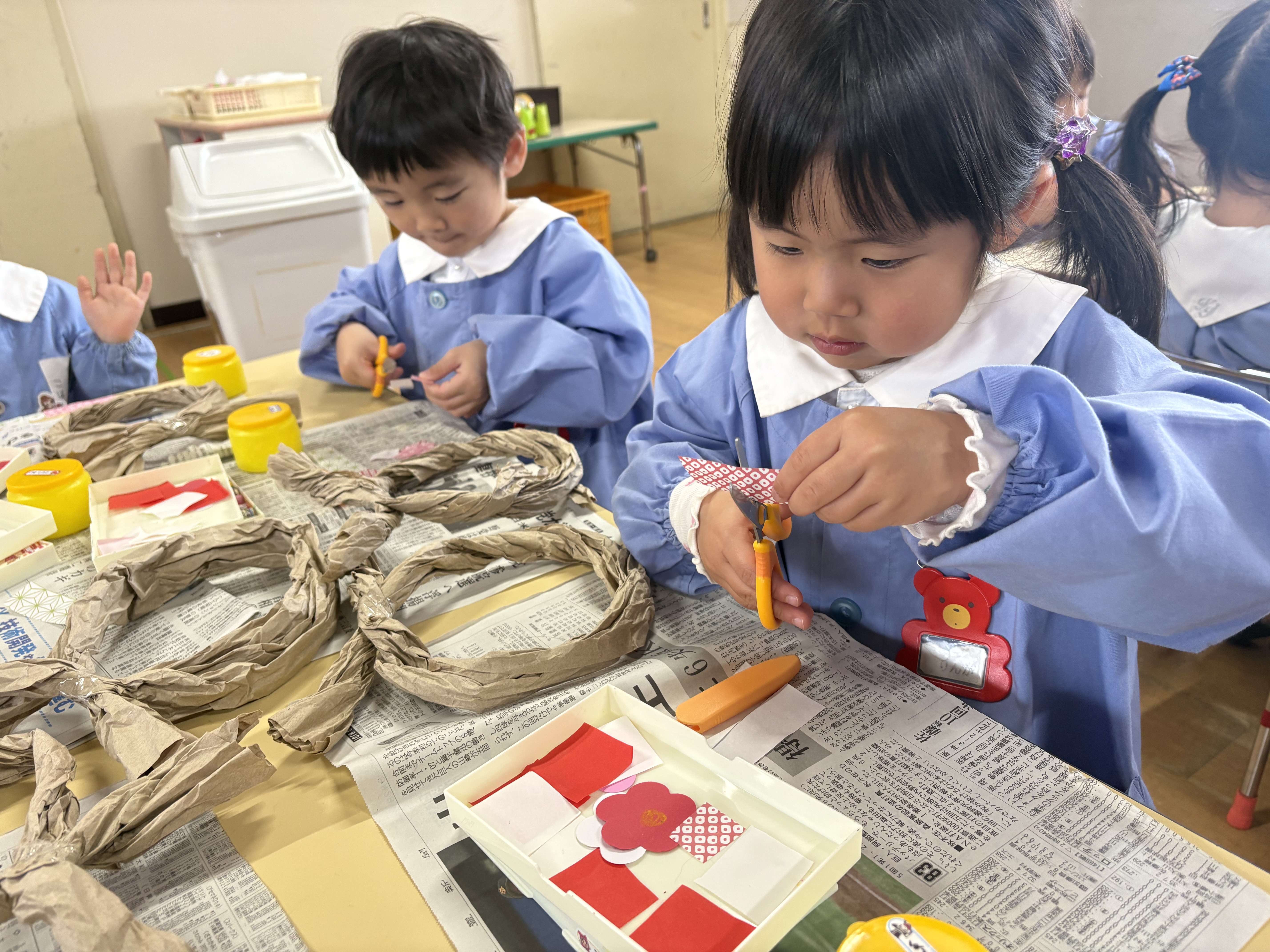 子どもたちと一緒に、来年の午年にちなんだ正月飾りに挑戦しました。