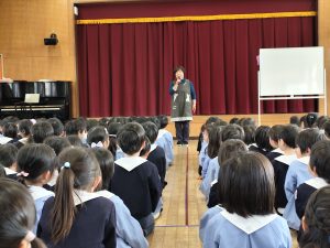 始業式では、園長先生から「3学期はまとめの学期!1日1日を大切に過ごそうね!」と