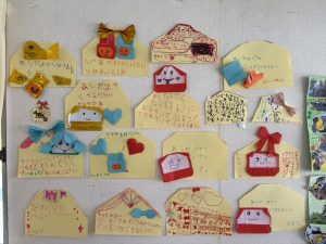 今日は絵馬を作りました!まずは先生たちの絵馬を見に行きました😊