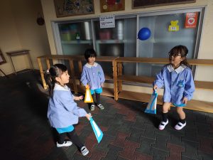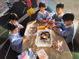 小さい組のお友達も、興味を持って遊びに来てくれましたよ。