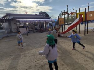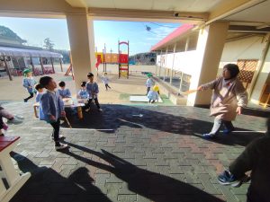 園庭ではバドミントンも。みんなとても上手です!