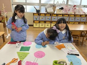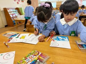 お部屋の中ではすごろくを作っている年長組さん。