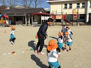 体も温まったね✨さあ!鬼ごっこを始めます!