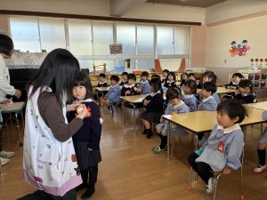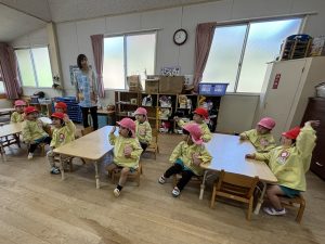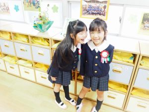 「笑顔いっぱい、元気いっぱい、優しさいっぱい鴻城幼稚園!」「おー!!!」