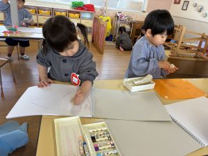 お部屋で好きな遊びを見つけてじっくり楽しんでいます。