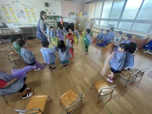 みんな音をよく聞いて、お友達とフープに上手に入ることが出来ました🌷