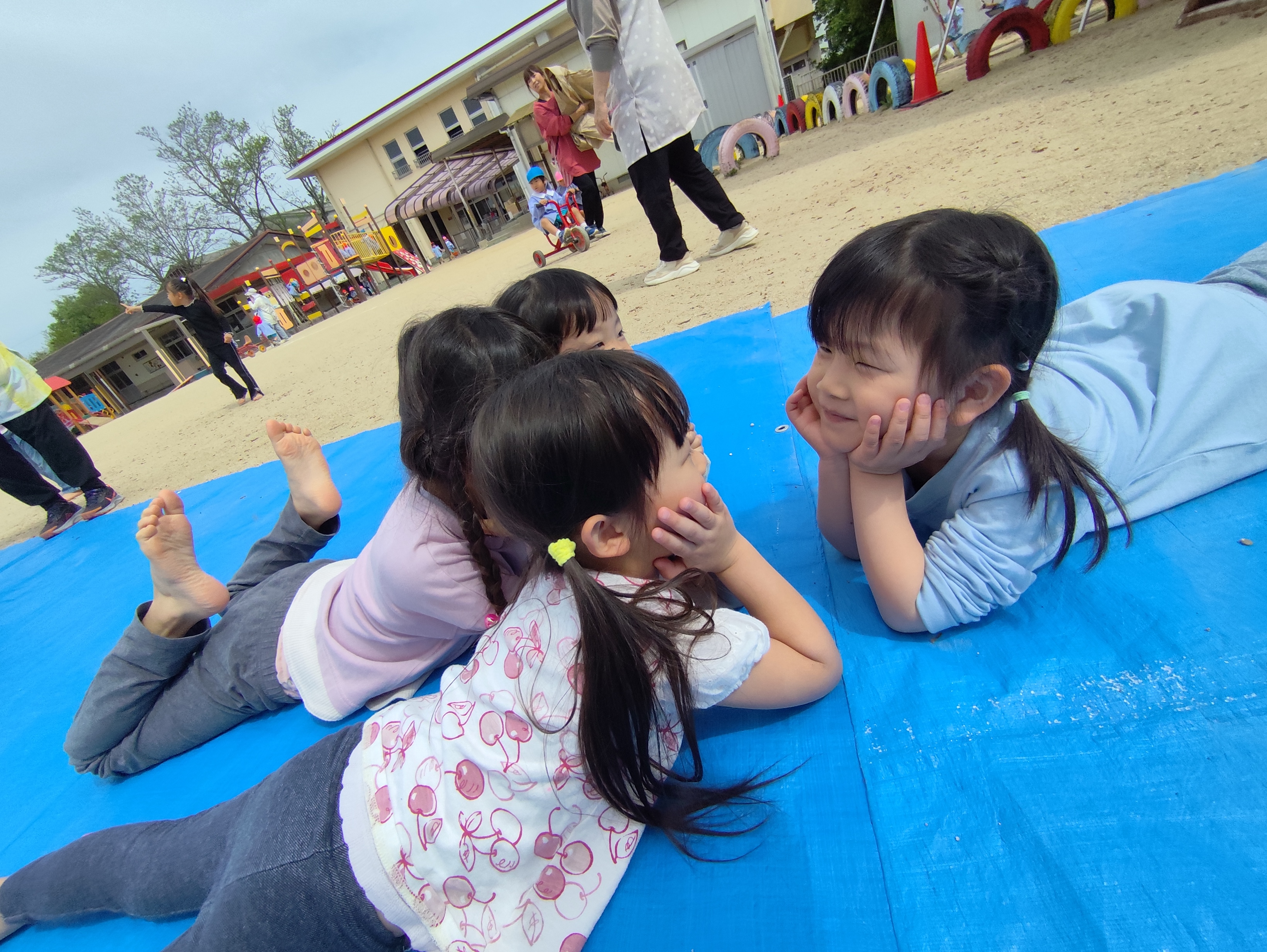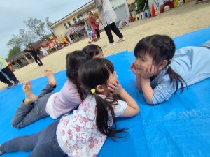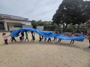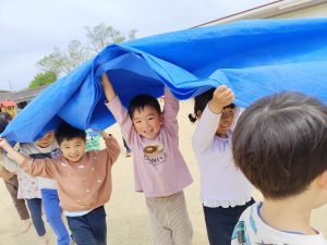 「シートをわっしょいわっしょい!おみこしみたいだね😊」