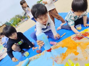 絵の具の感触って気持ちいいね~鯉のぼり製作~(年長組)