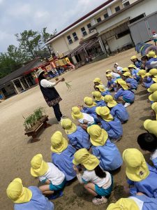 年少組、年中組、年長組一斉に夏野菜の苗を植えました😊